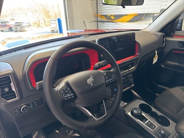 You can roam free in our 2025 Ford Bronco Sport Free Wheeling 4X4, which turns heads with 1970s style in Ruby Red Metallic! Motivated by a TurboCharged 1.5 Liter EcoBoost 3 Cylinder generating 181hp for an 8 Speed Automatic transmission for dynamic capability on the road or trail with multiple performance modes. You can also see nearly 28mpg on the highway in this Four Wheel Drive SUV, and it fits right in during urban journeys with its bold design. Our Bronco Sport features throwback graphics, LED lighting, two-color Bronco grille lettering, roof rails, alloy wheels, and a versatile tailgate with built-in flood lamps and flip-up glass.