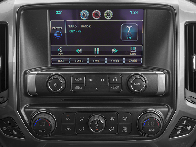 The spacious, well-appointed interior features premium leather seating, dual-zone automatic climate control, and a Bose premium audio system to create a truly luxurious driving experience. The rear vision camera and park assist sensors make navigating tight spaces a breeze, while the power sliding rear window and remote vehicle starter system add to the Silverado's versatility.