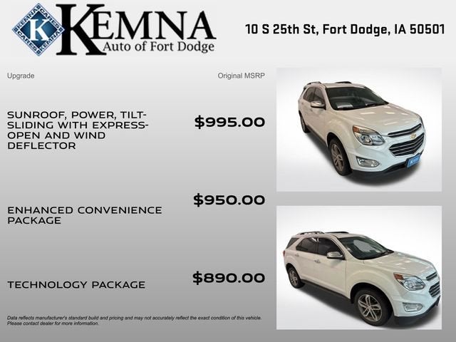 Discover the perfect blend of style, performance, and convenience in this stunning 2016 Chevrolet Equinox LTZ. With its sleek white exterior and well-appointed interior, this Equinox is sure to turn heads wherever you go.- LOCAL TRADE**- Power, Tilt-Sliding Sunroof with Express-Open and Wind Deflector- Enhanced Convenience Package, including 8-way Power Front Passenger Seat, Power Programmable Rear Liftgate, and Universal Home Remote- Technology Package with Chevrolet MyLink Navigation and Pioneer Premium Audio SystemThe Equinox LTZ offers an exceptional driving experience, thanks to its 2.4L 4-cylinder engine and 6-speed automatic transmission. With an impressive 32 MPG on the highway, this SUV delivers both power and efficiency, making it the perfect companion for your daily commute or weekend adventures.Stepping inside, you'll be greeted by the Equinox's luxurious leather-appointed seats, which are both heated and power-adjustable for maximum comfort. The Chevrolet MyLink infotainment system, complete with navigation and a premium 8-speaker sound system, keeps you connected and entertained on the go.Safety is also a top priority, with features like electronic stability control, traction control, and a rear-view camera ensuring a secure and confident driving experience. The Equinox's spacious interior and versatile cargo area make it the perfect choice for families, outdoor enthusiasts, and anyone who demands more from their SUV.Whether you're looking for a stylish, well-equipped, and practical vehicle, or simply want to elevate your driving experience, this 2016 Chevrolet Equinox LTZ is sure to impress. Visit our showroom today and let us demonstrate how this exceptional SUV can enhance your life on the road.