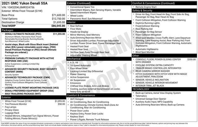 Discover the exceptional 2021 GMC Yukon Denali, a true testament to luxury and capability. With its striking White Frost Tricoat exterior, this one-owner SUV boasts a remarkable set of features that will elevate your driving experience.