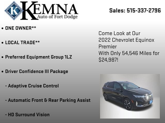 Discover the perfect blend of style, performance, and technology in the 2022 Chevrolet Equinox Premier. This sleek and versatile SUV is ready to elevate your driving experience.