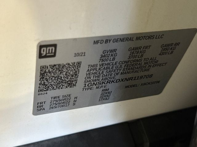 Combining premium comfort, advanced technology, and rugged capability, this 2022 Chevrolet Tahoe RST is a true standout in the SUV segment. With an EPA-estimated 15 city/20 highway mpg, it offers a balance of power and efficiency to meet your daily driving needs.