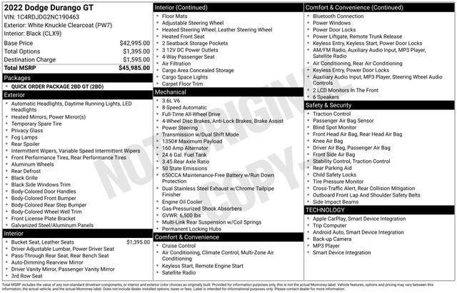 At our dealership, we're committed to providing our customers with the best possible experience. That's why we're confident in offering this 2022 Dodge Durango GT as a top-quality, well-maintained vehicle that will exceed your expectations. Don't miss your chance to make this impressive SUV your own. Contact us today to schedule a test drive and see for yourself why the Durango GT is the perfect choice for your next vehicle.