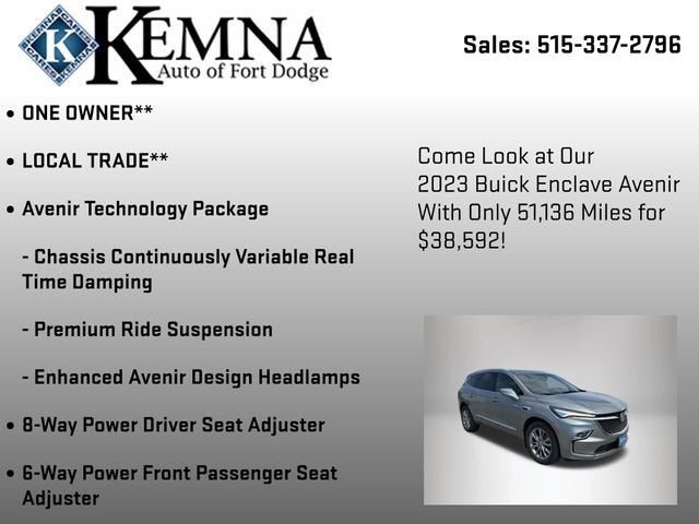 Experience the ultimate in luxury, performance, and technology with the 2023 Buick Enclave Avenir. Visit our showroom today and let us demonstrate how this exceptional SUV can elevate your driving experience.