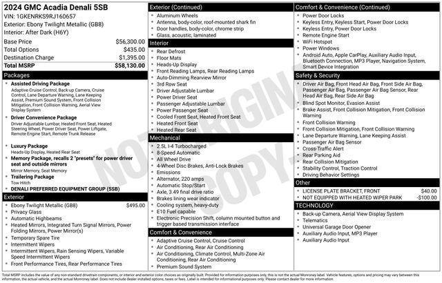 Don't miss the opportunity to experience the exceptional quality and value of this 2024 GMC Acadia Denali. Visit our showroom today and let us demonstrate how this remarkable SUV can elevate your driving experience.
