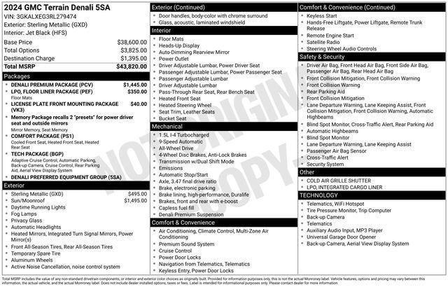 Powered by a responsive 1.5L DOHC engine and equipped with a smooth-shifting 9-speed automatic transmission, this Terrain Denali delivers an exceptional driving experience, with an impressive 23 city and 28 highway MPG. The all-wheel-drive system ensures confident handling in any conditions, while the premium Bose sound system and advanced connectivity features, including wireless Apple CarPlay and Android Auto, elevate your daily commute or weekend adventures.