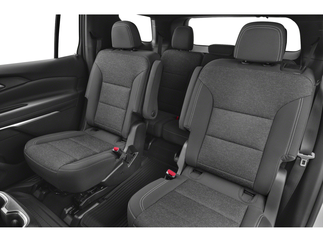 This Traverse LT 2LT is equipped with a host of premium amenities, including a high-gloss black door upper molding, a 120V power outlet, HD Surround Vision, a heated steering wheel, Rear Pedestrian Alert, and Traffic Sign Recognition. The split-bench third-row seating, heated driver and front passenger seats, and 20-inch high-gloss black painted aluminum wheels further elevate the vehicle's luxurious appeal.